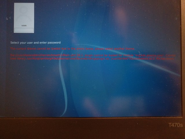 Screenshot of error on login screen. https://i.postimg.cc/C5Hy2pH9/IMG-20201016-120341.jpg What I've tried I tried renaming the kde config folders in ~/.kde4 and ~/.local/share/kde5 and booting again from usb system. Same error appeared and still locked out. By looking at the filesystem afterwards, these two folders were not re-created by the system on its attempt to boot. This suggests the error happens before the system even attempts to read these files. Next thing to try would be to research how to install breath2, libcorebindigsplugin and/or org.kde.plasma.core through command line on chroot. Possible Solutions I imagine this could be fixed by `chroot`ing and running some commands to either reset the Plasma settings, or installing missing dependencies. Any input, advise, or documentation are highly appreciated. Thanks for reading. |